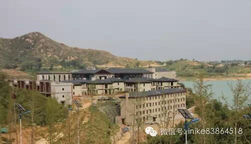 在西柏坡高速公路收费站附近的讲里村,“红湾酒店”别墅群项目建设正进行得如火如荼。几栋高楼矗立在与水面近在咫尺的山坡上,联排别墅和十余栋独栋别墅已经开始封顶装修。记者在现场看到,这座占地数十亩的别墅群项目,距水库最近处几乎与水面相连。